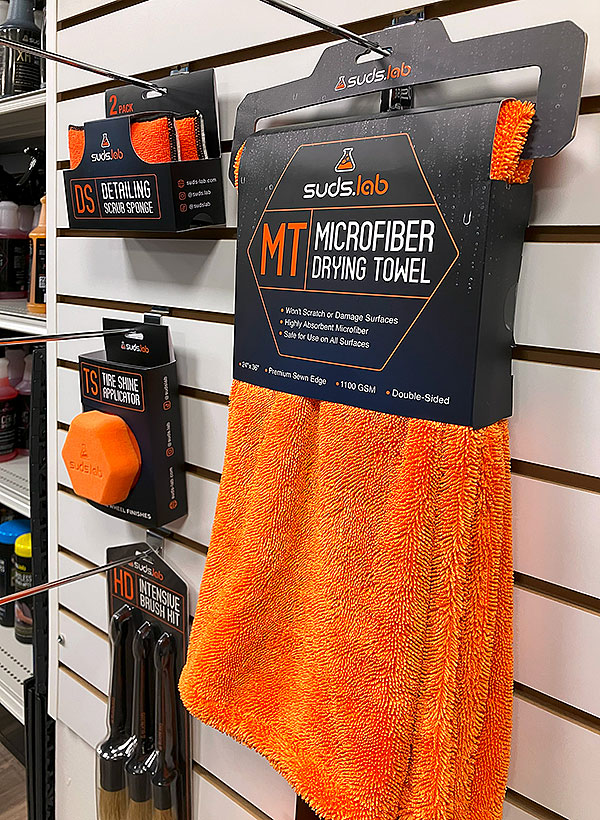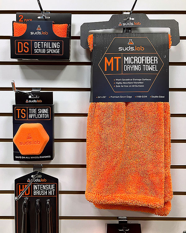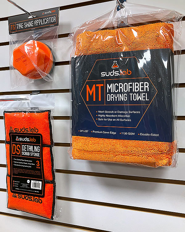 Package redesign proposal for Suds Lab, a car accessories brand under Merkury Innovations. From the initial simple packaging used during the brand launch, we proposed packages that would better appeal to consumers in-store.